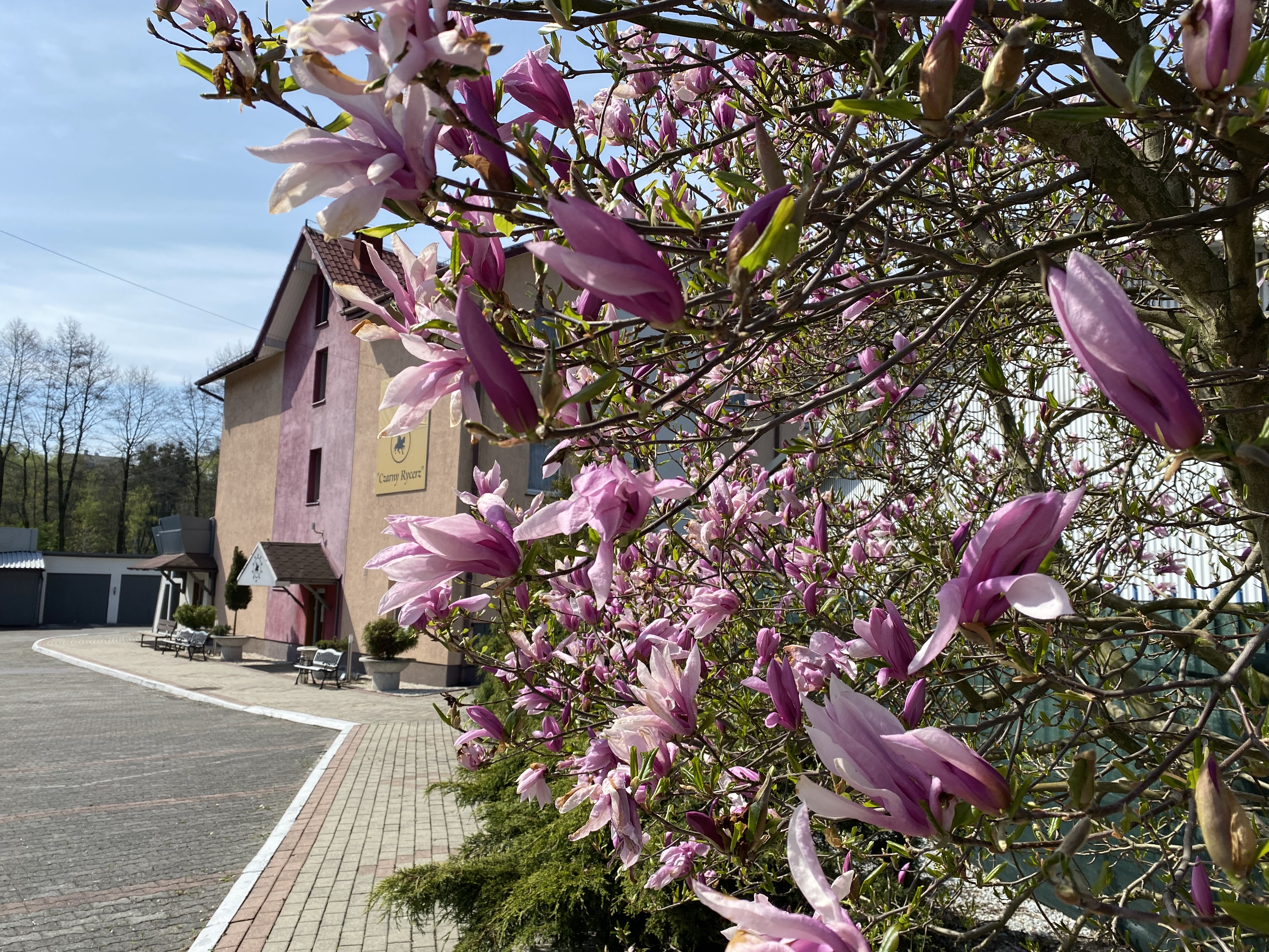 Nadszedł maj, wiosna budzi się do życia, ptaki śpiewają, roślinność budzi się do życia. Naszych gości wita kwitnąca magnolia, która co roku pięknie zakwita.