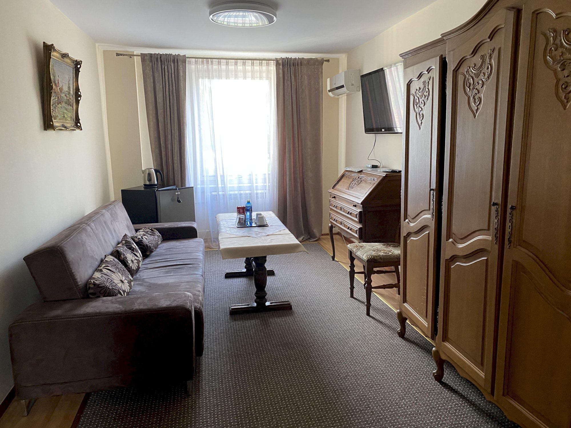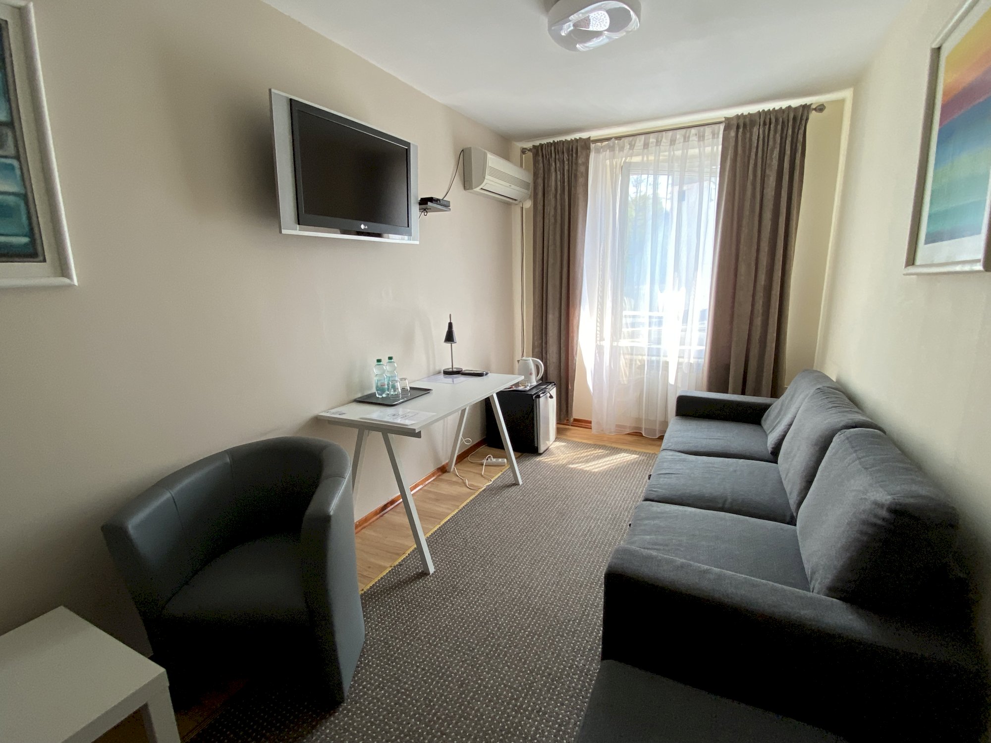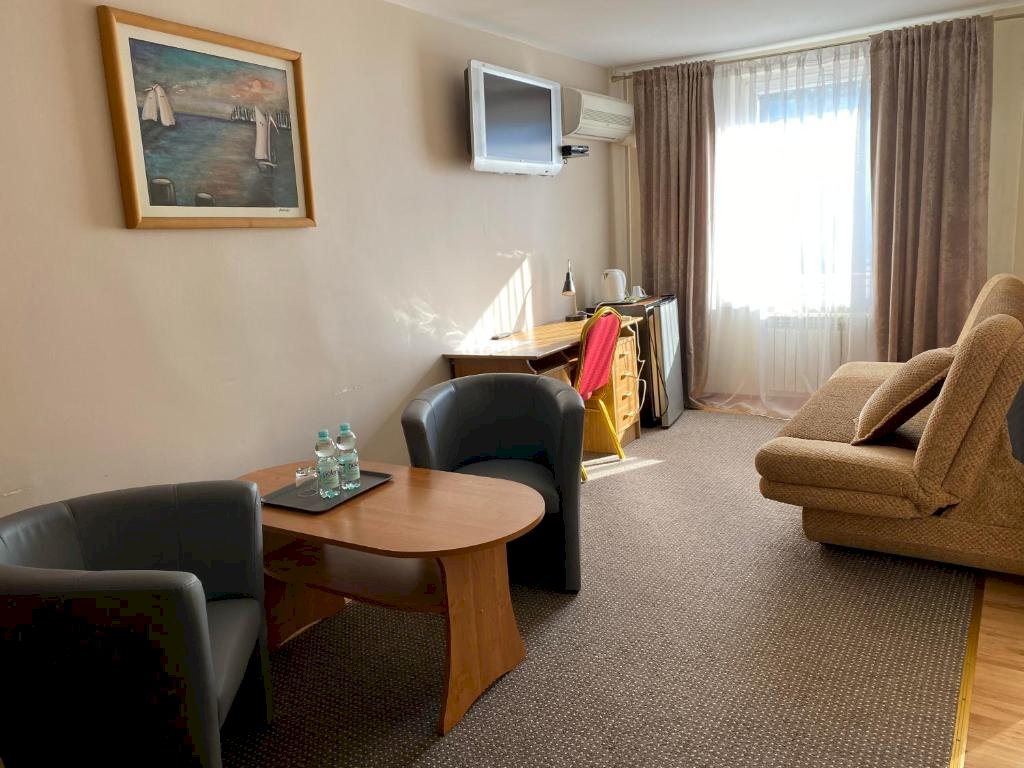 W pokojach Studio i Studio Plus dodatkowo czajnik z zestawem do parzenia kawy/herbaty, lodówka oraz klimatyzacja.