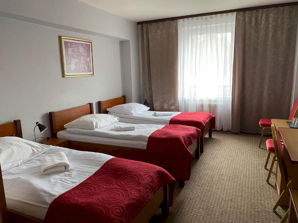 Pokój z wygodnymi trzema pojedynczymi łóżkami.